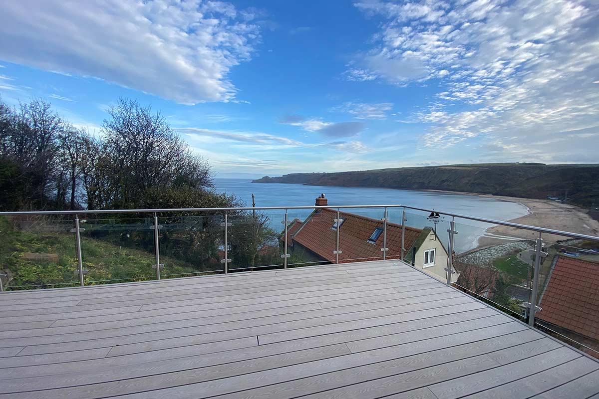 Outside, there is a large balcony with outside seating, table and chairs. Breathtaking views of the bay from this lofty vantage point - a rarity in Runswick Bay.
